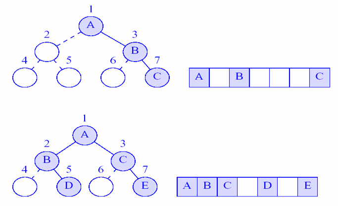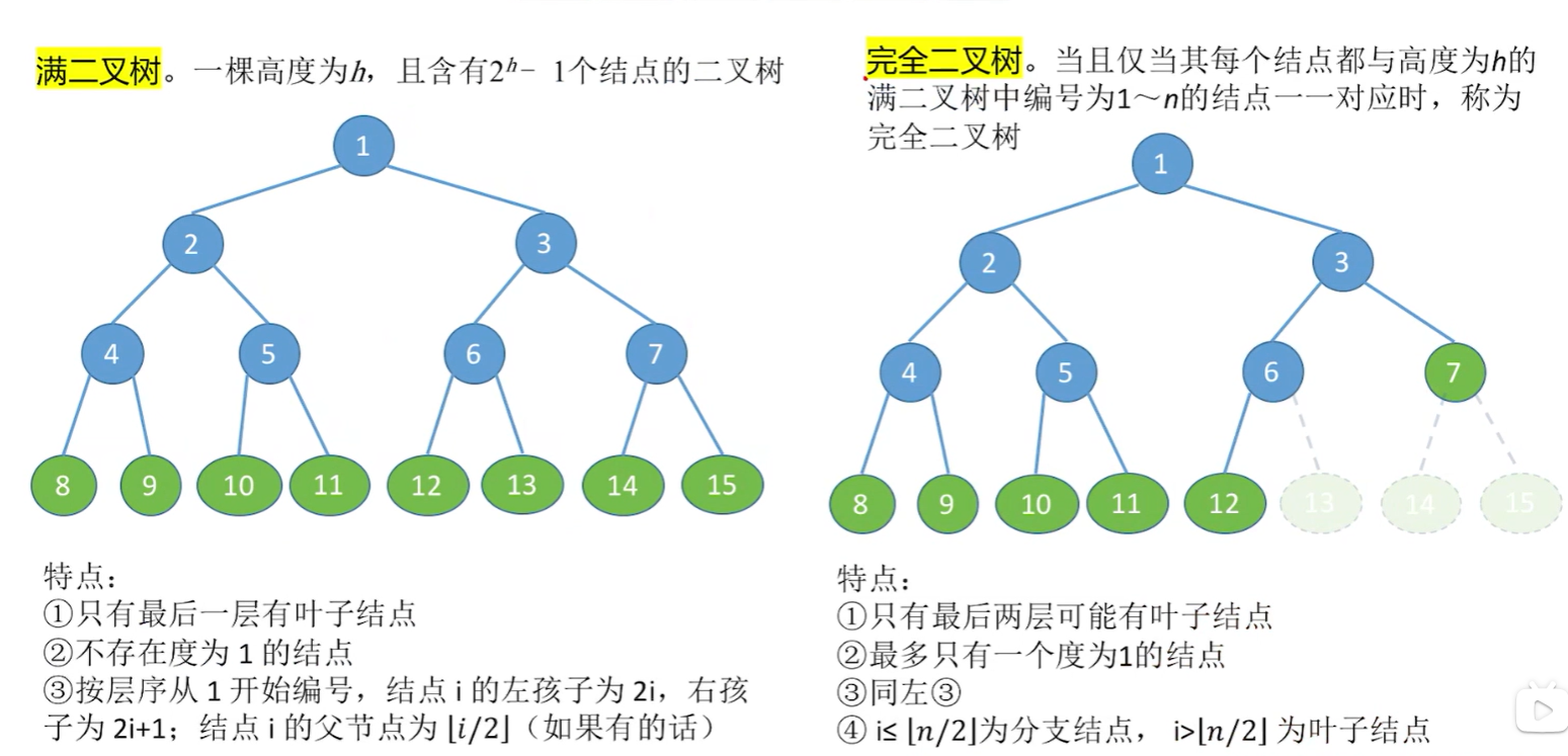 完全二叉树:按照二又树对元素的编号方法,将二叉树的元素存储在数组中。
