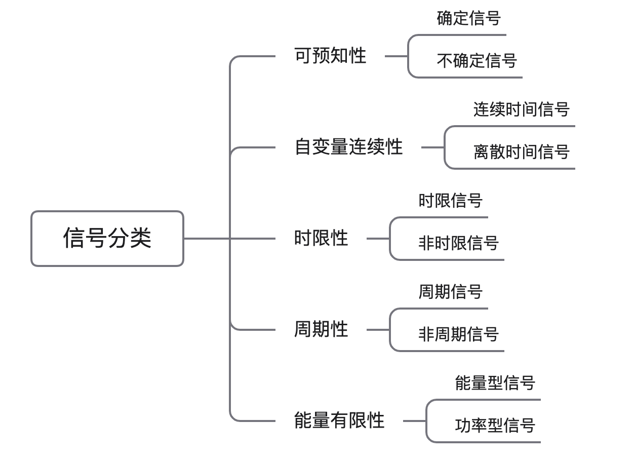 我们可以根据信号的不同特质,划分为不同的信号类型:按照可预知性,可分为确定信号与随机信号;按照自变量的连续性(定义域),可分为连续时间信号与离散时间信号(也叫做序列);按照时限性,可分为时限信号与非时限信号;按照周期性,可分为周期信号与非周期信号;按照能量有限性,可分为能量型信号与功率型信号。