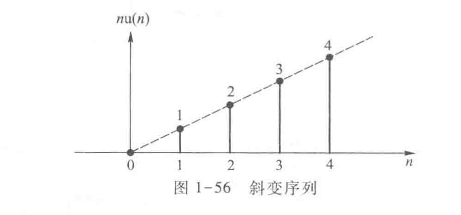 斜变序列与连续时间信号中的斜变信号\(t\mathrm{u}(t)\)相类似,图像如下所示