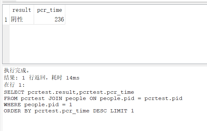 ORDER BY pcrtest.pcr_time DESC LIMIT 1