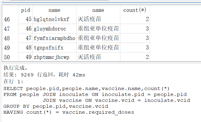 SELECT people.pid,people.name,vaccine.name,count(*)
