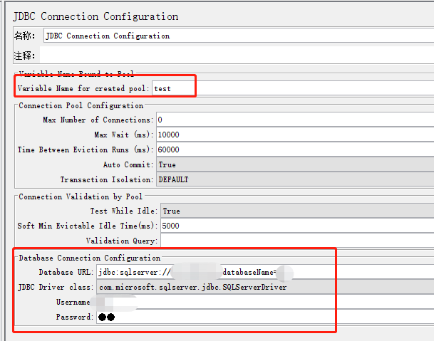 Database URL:jdbc:sqlserver://数据库IP地址;databaseName=访问的数据库名称