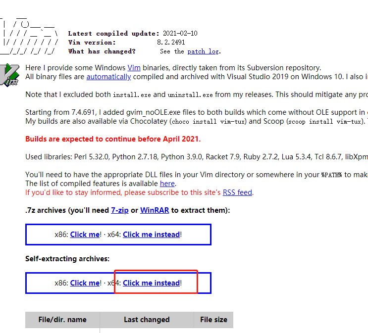 1、https://tuxproject.de/projects/vim/x64/官网下载