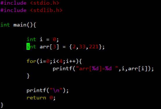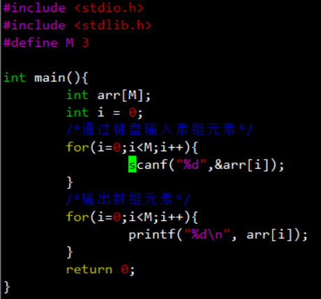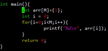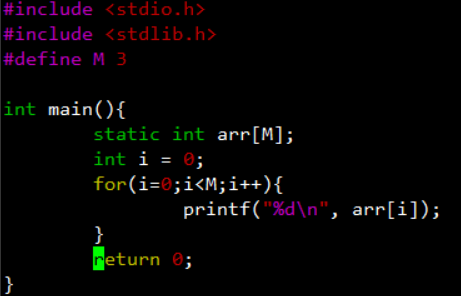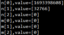 #include <stdio.h> #include <stdlib.h> int main(){ /*数组n未进行初始化*/ int n[3]; int i=0; for(i=0;i<3;i++){ printf("n[%d],value=[%d]\n", i,n[i]); } /*数组m进行初始化*/ int m[3] = {0}; for(i=0;i<3;i++){ printf("m[%d],value=[%d]\n", i,m[i]); } return 0; }