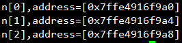 #include <stdio.h> #include <stdlib.h> int main(){ int n[3]; int i=0; for(i=0;i<3;i++){ printf("n[%d],address=[%p]\n", i,&n[i]); } return 0; }