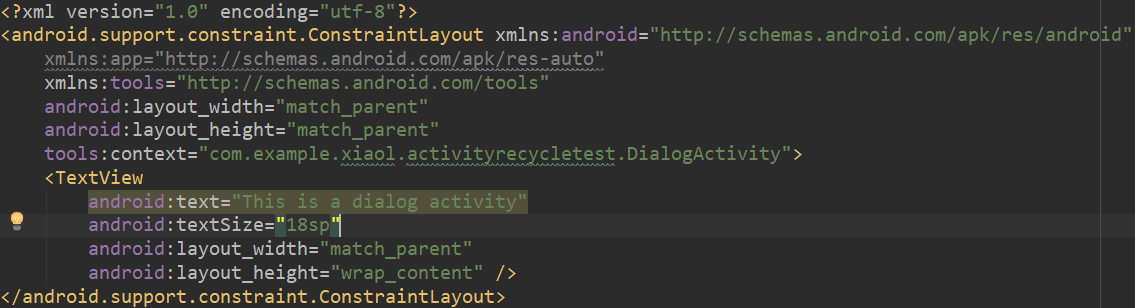 DialogActivity 对话框活动。设置布局,<TextView>。