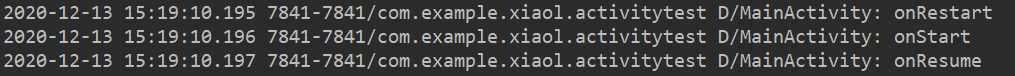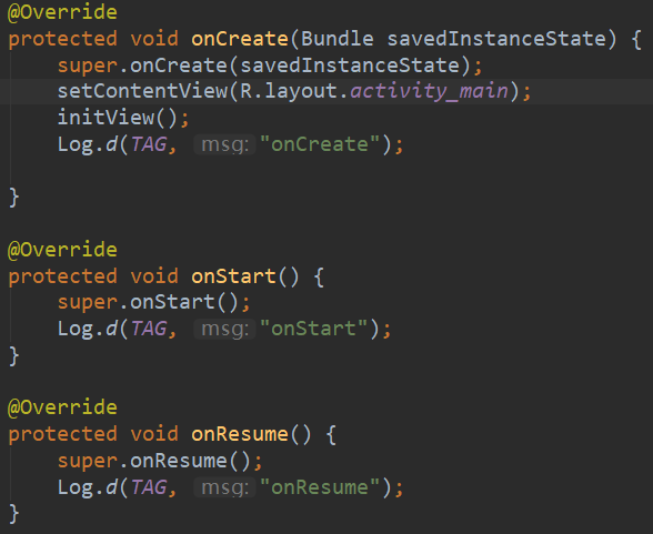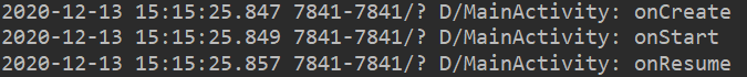 当MainActivity启动时,onCreate onStart onResume 三个方法被调用。