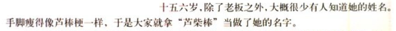 课文对芦柴棒进行3次描写。第一处描写是第5段,一个人太瘦了,芦柴棒便成了她的名字。第二次描写是第15段对芦柴棒的描写。第三次描写是第30段。