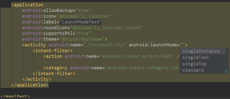 在AndroidManifest.xml文件中,可以设置活动的启动模式,活动的启动模式有4种。