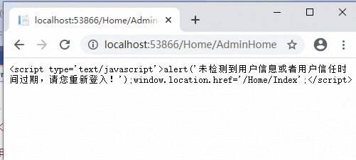 string message= string.Format("<script type='text/javascript'>alert('未检测到用户信息或者用户信任时间过期,请您重新登入!');window.location.href='{0}';</script>", "/Home/Index");
