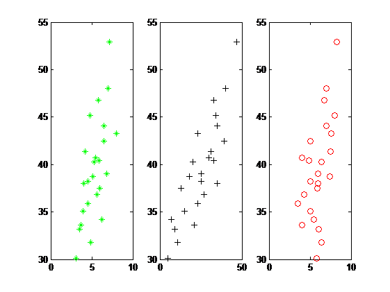 subplot(1,3,1),plot(x1,Y,'g*'),