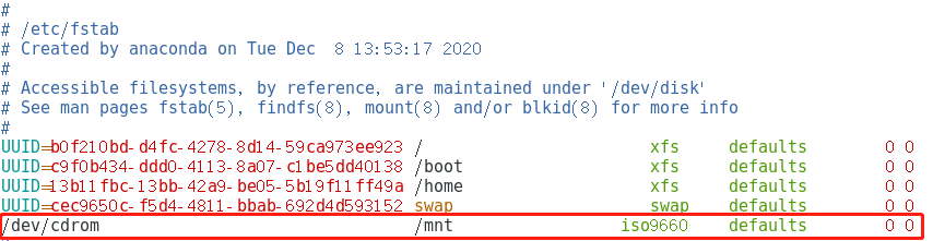 2、将镜像光盘设为永久挂载