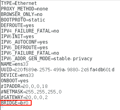 #删除原先地址,设置为网桥模式,关联br0网卡