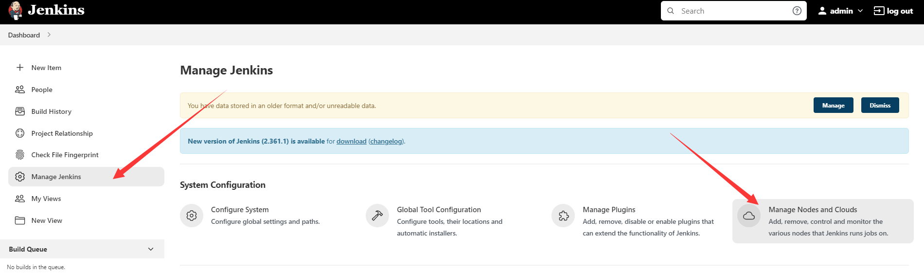 点击Manage Jenkins功能项后,打开节点管理列表项