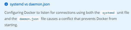 这里进行告知 "同时使用daemon.json和systemd单元文件进行配置会冲突导致docker无法启动";但是我这边没有使用systemd单元文件的情况下,在/etc/docker/daemon.json创建个空的文件都会导致docker服务启动报告,属实很奇葩。