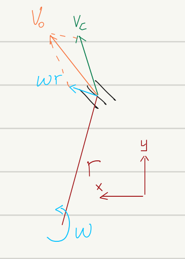 已知条件:小车在以底盘平面为xoy面的坐标系上,欲使小车以Vc的速度在oxy平面上运动,同时围绕小车云台YAW轴以w的角速度旋转