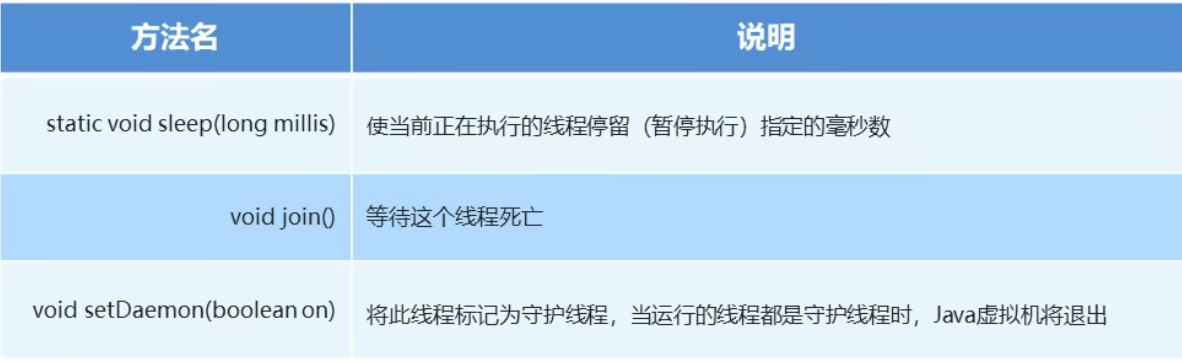 - public static Thread currentThread():返回对当前正在执行的线程对象的引用