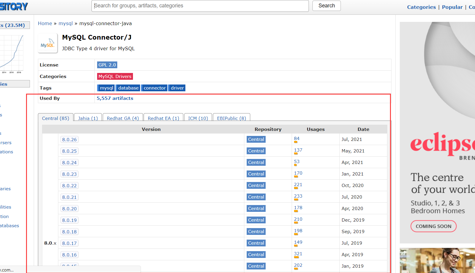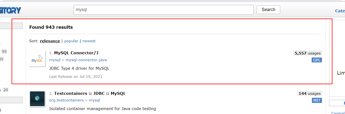 - 可以进入MAVEN仓库 https://mvnrepository.com/ 搜索MySQL