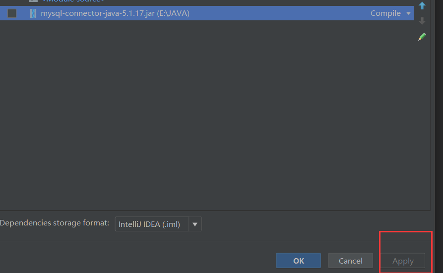 - 打开之后导入你的JAR包,导入后需要点击一下APPLY,否则可能不会显示。