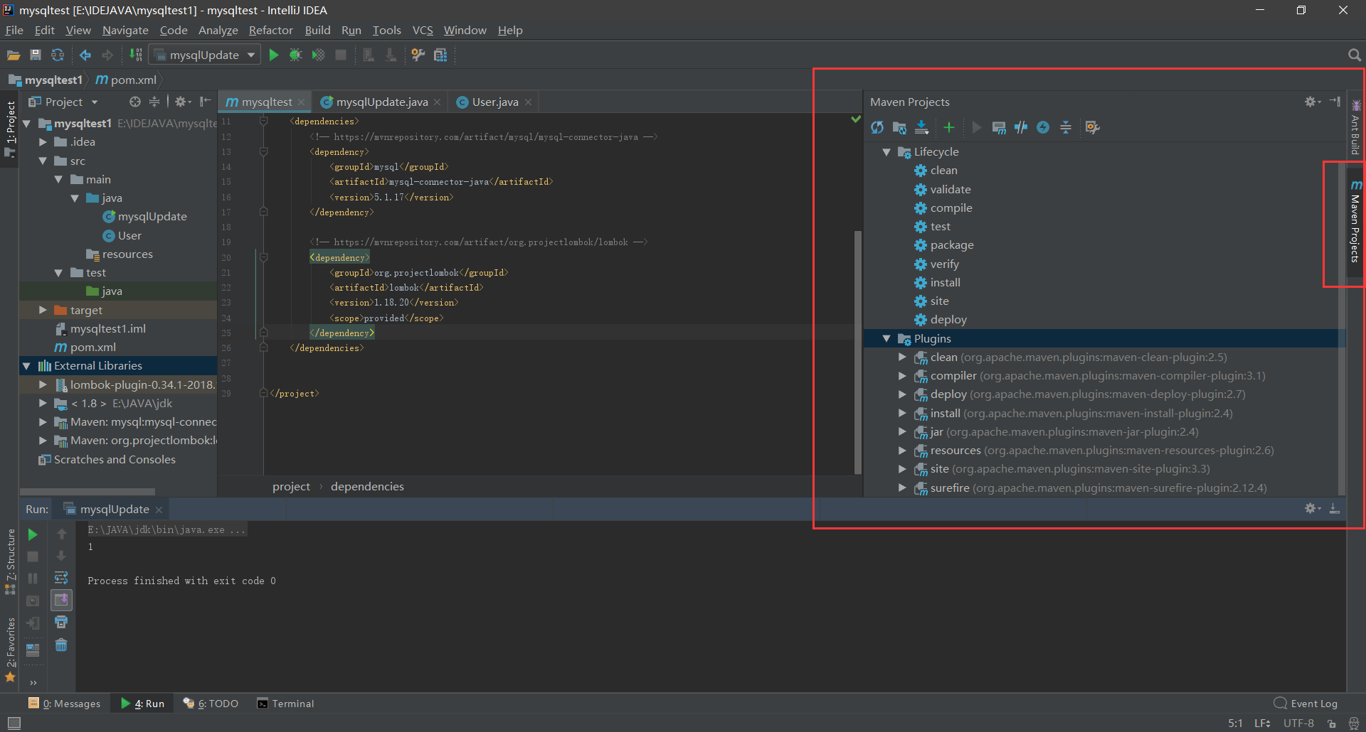 - 在右侧的maven管理中下载完成之后就不会报错会有一些文件出现。