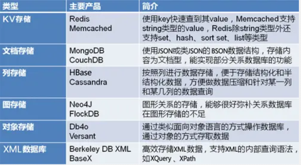 - NoSQL分类