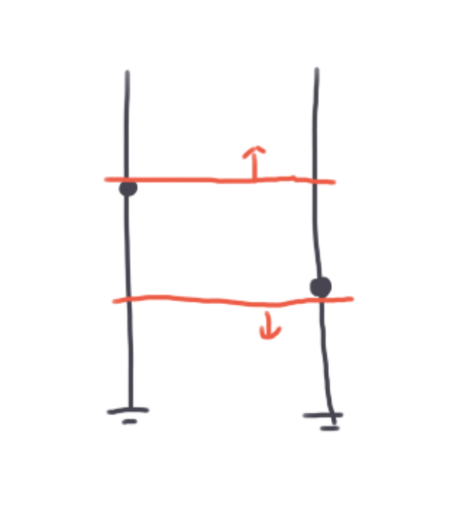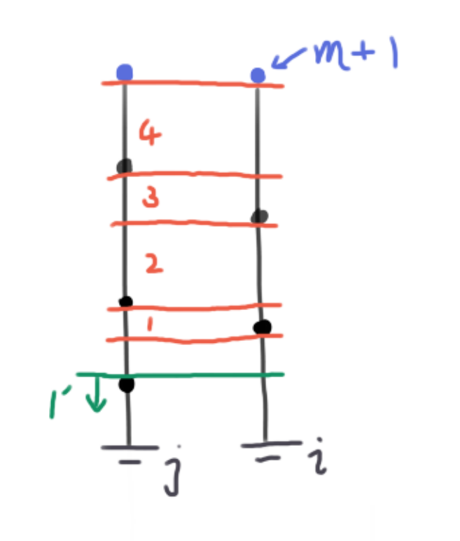 比如上面的情况我们依次枚举 1~4 段,令卡住矩形上边界段的纵坐标落在这个区间里面,然后如果再在下面找一个点,就构成了一个本质不同矩形。换句话说,我们让每一个可能的本质不同的矩形在其 "左右边界上纵坐标最大的点" 构成的点对处被枚举到。