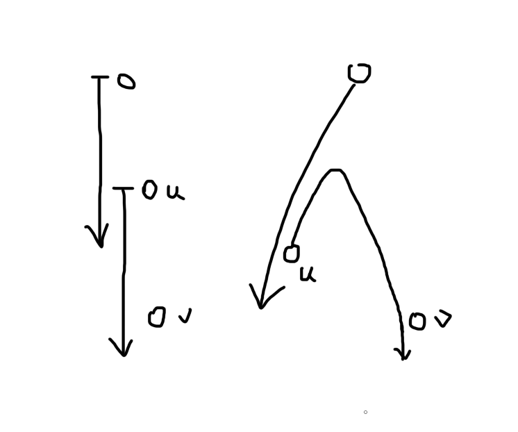考虑由根向某点传递信息的过程。对所有可能的树上路径的形态进行讨论,我们发现传播过程中只可能存在这两种路径: