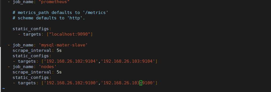 - targets: ['192.168.26.102:9104','192.168.26.103:9104']