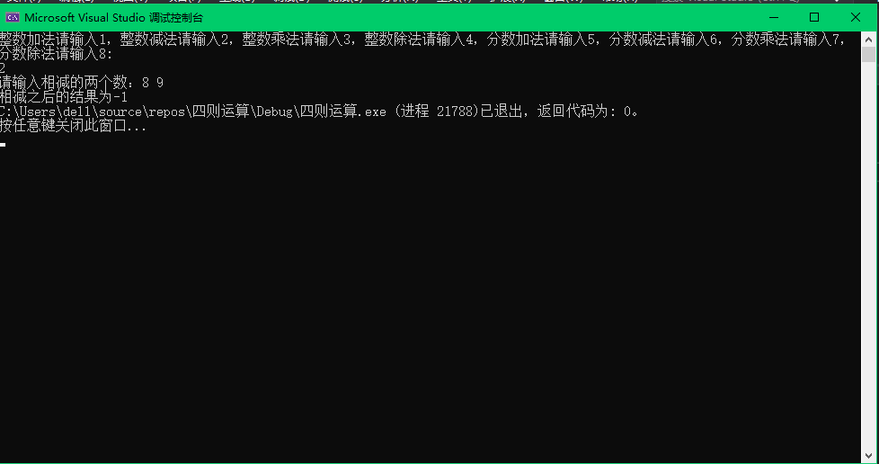 printf("请输入相减的两个数:");