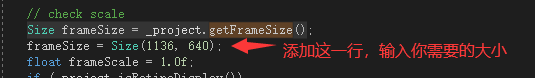 项目工程下的 SimulatorWin.cpp 文件,打开这个文件,搜索 Size frameSize = _project.getFrameSize ,然后再设置你需要的大小
