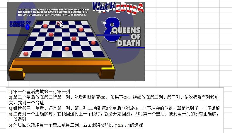 - 第二个皇后放在第二行第一列、然后判断是否 OK, 如果不 OK,继续放在第二列、第三列、依次把所有列都放完,找到一个合适