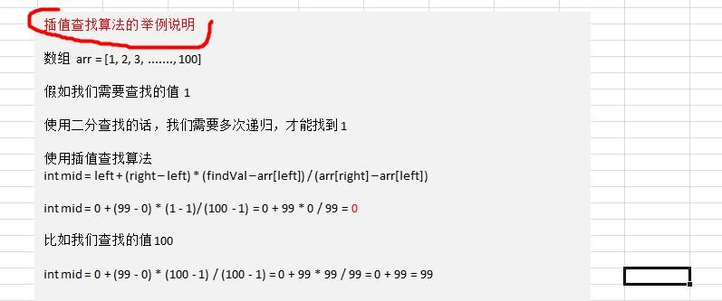 插值查找算法类似于二分查找,不同的是插值查找每次从自适应 mid 处开始查找。