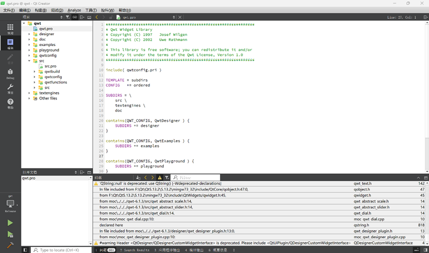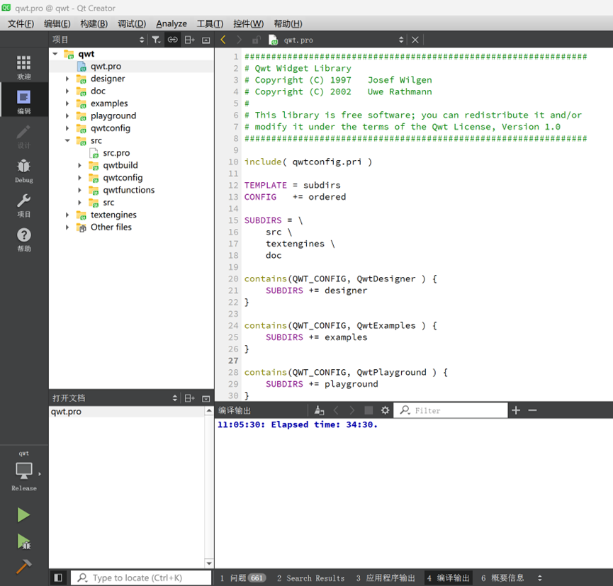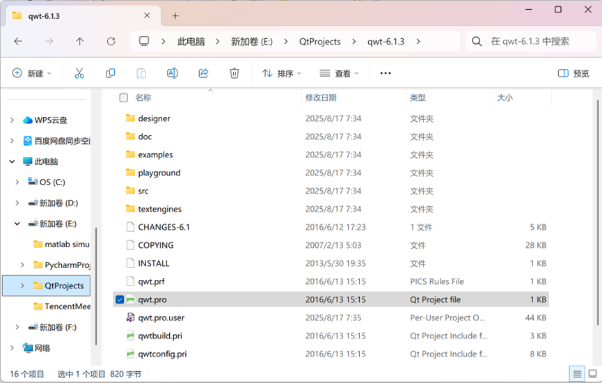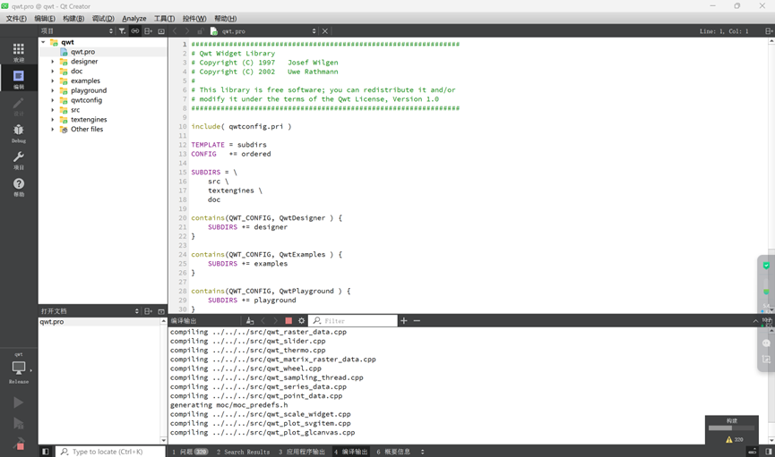 1. 下载解压qwt-6.1.3之后,在Qt软件中打开qwt项目(32bit),我解压后的qwt-6.1.3文件放在 E:\QtProjects 文件夹下