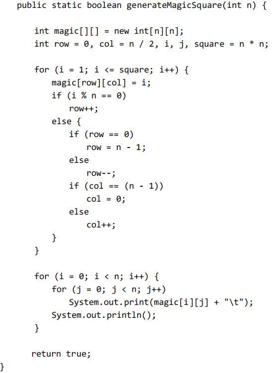 int sum=n*(1+n*n)/2;//若满足行和=列和=对角线和,则此常数=(1+2+...+n^2)/n=n*(1+n*n)/2,记为sum