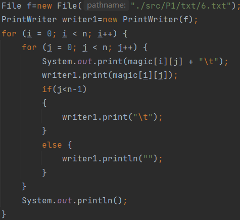 (1)将产生的幻方写入文件,使用PrintWriter的print方法进行写入操作。