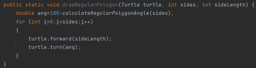 程序首先要新建一个“海龟”作为画笔 DrawableTurtle turtle=new DrawableTurtle 默认朝向正上方