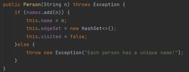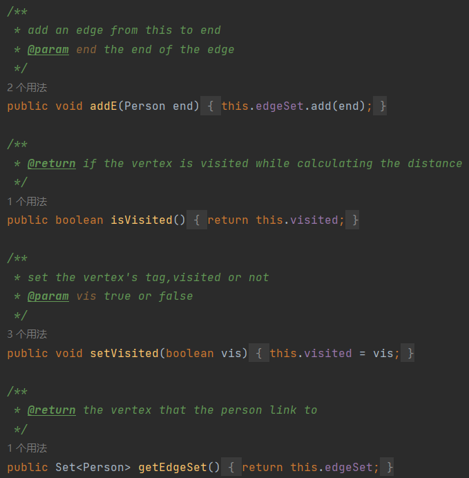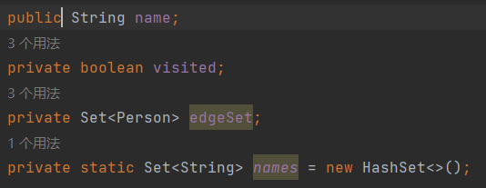 visited属性用于在之后的搜索中判断该顶点是否被访问过。静态属性names用于存储已有的名字,以防止创建具有相同名字的Person对象。