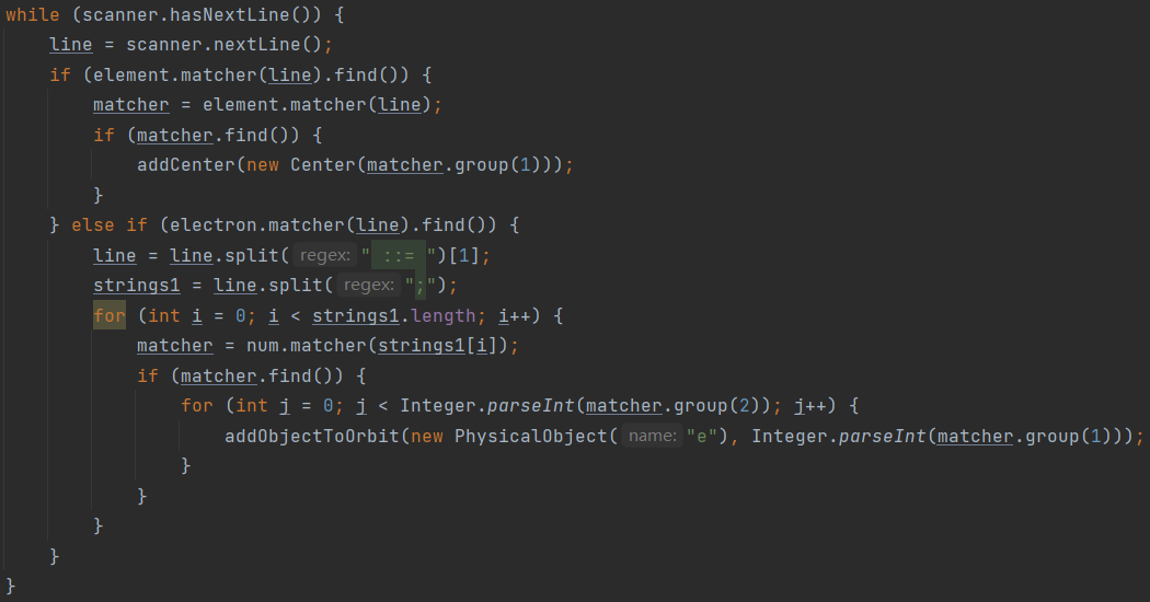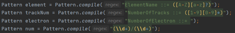 读取电子排布的方式是:先用split获取" ::= "后面的部分,然后用";"进行分隔,写入字符串数组strings1,这样strings1中的每个元素应当是“轨道编号/电子数”的形式,依次读取strings1中的每个元素即可。