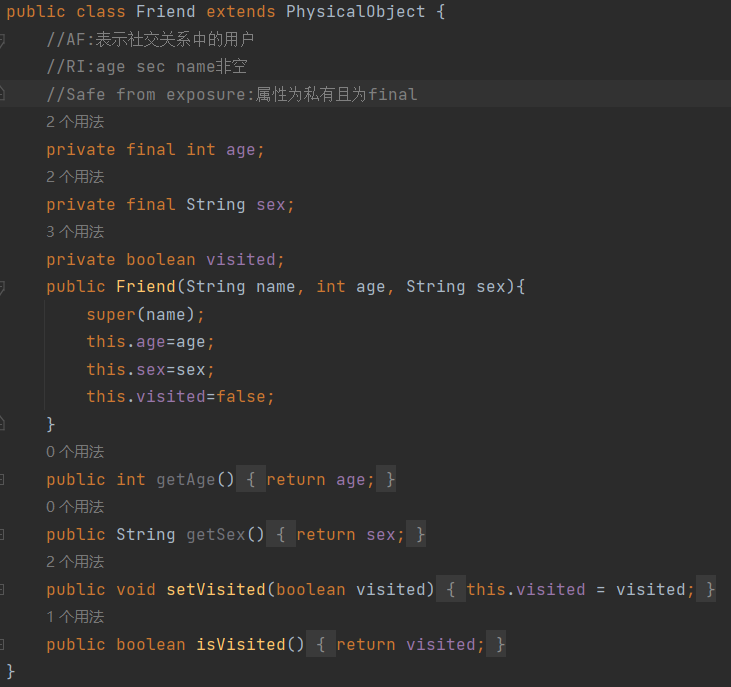 Friend类,作为SocialNetworkCircle的轨道物体类及中心物体类