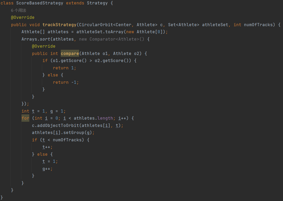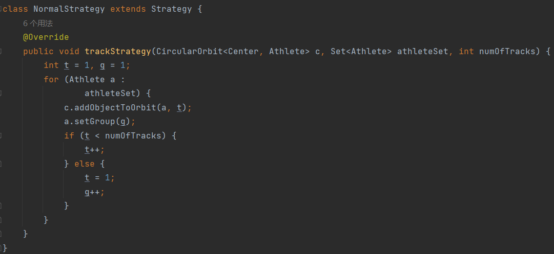 在TrackGame中设置一个Strategy对象strategy,进行轨道安排时,调用strategy的trackStrategy即可。设置setStrategy方法以支持切换策略