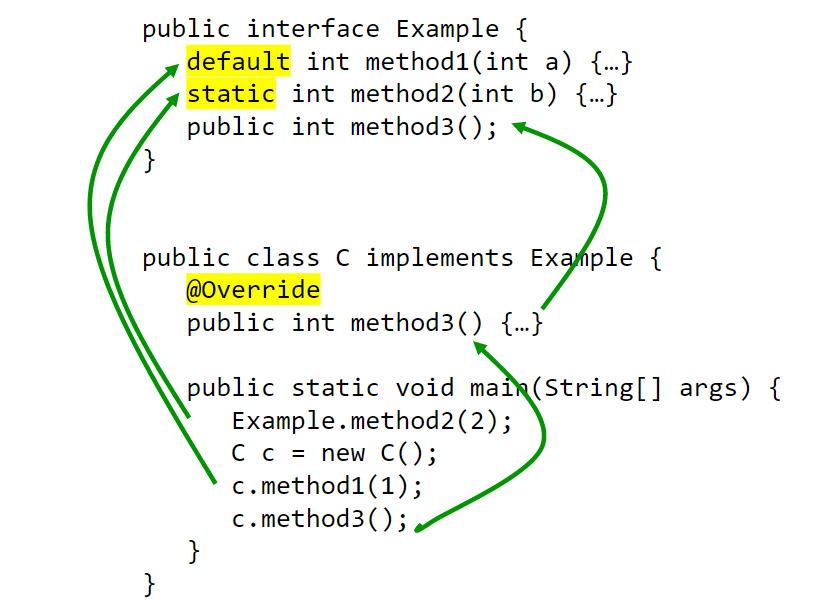 在接口中可实现用defalt关键字修饰的方法(非静态方法),在实现类中不需要重复实现