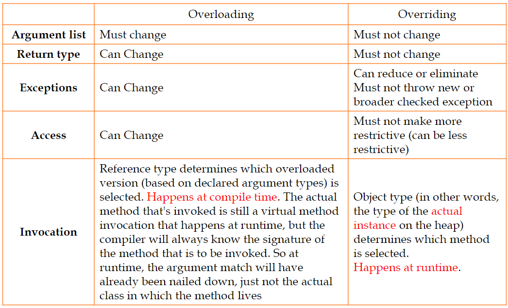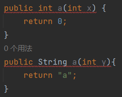 重载的参数类型或参数个数必须不同,返回值、修饰符、异常可以不同: