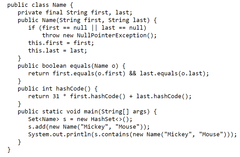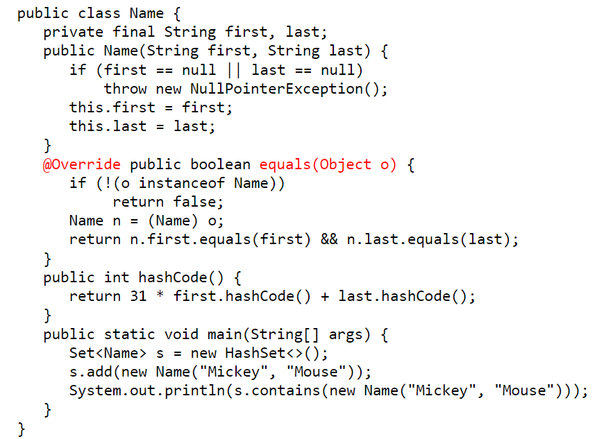 - 除非对象被修改了,否则多次调用equals应得到相同的结果