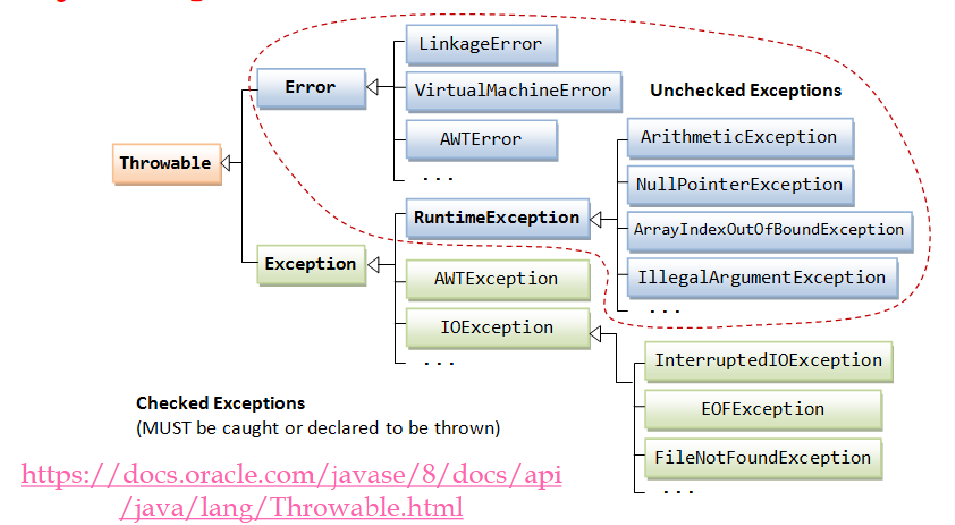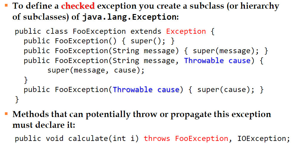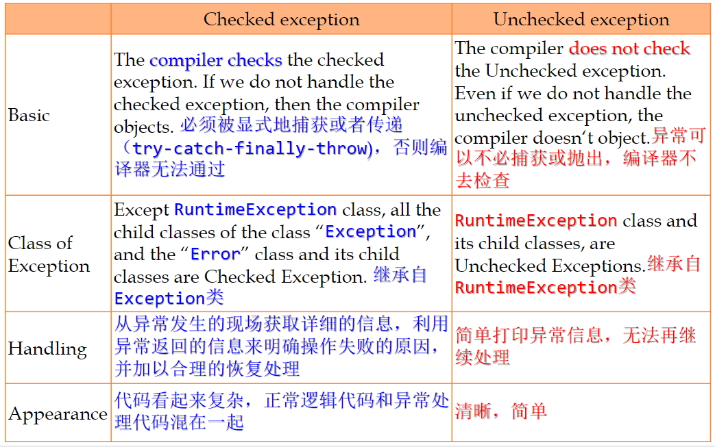 对于Checked异常,要么方法中有对应的处理程序(将其捕获),要么在方法签名中声明