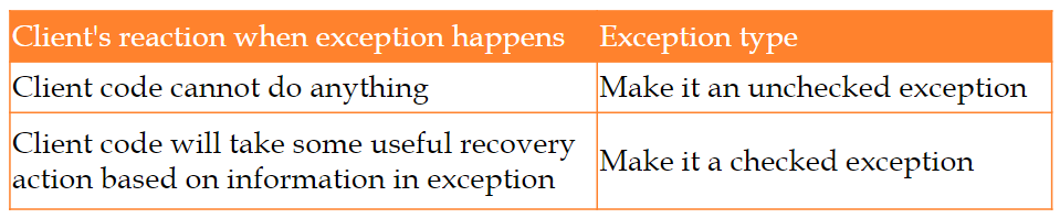 如果客户端可以通过其他的方法恢复异常,那么采用checked exception;