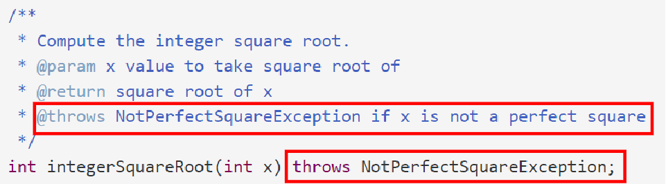 相反地,unchecked exception不是post-condition的一部分,所以不应该出现在spec和函数签名中!