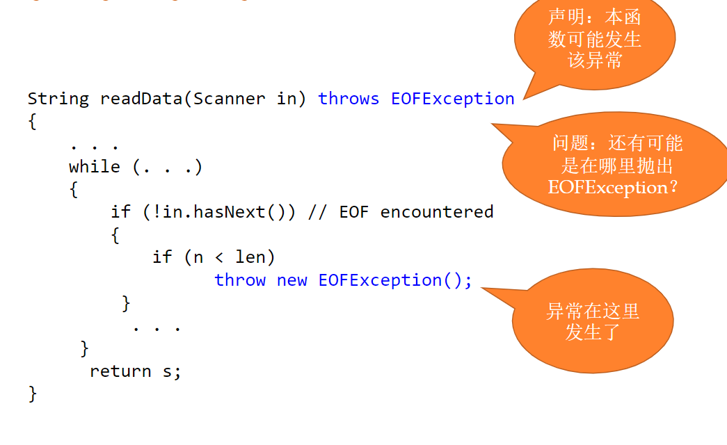 方法throws的异常包括:调用的其他方法抛出的checked exception;本方法创建的checked exception