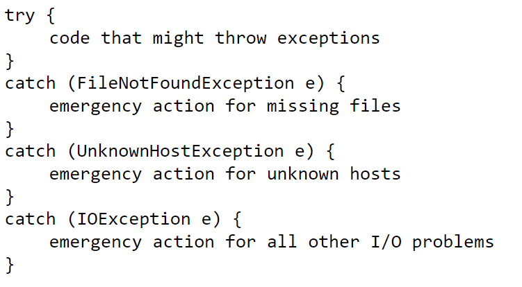 如果一个方法可能抛出多种checked exception,必须把它们都列在函数签名中