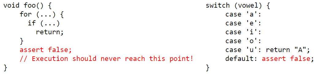 - 控制流不变量(断言程序的某个位置不会到达,如switch的defalt)