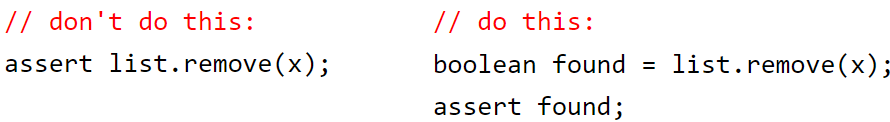 若采用前一种,则由于实际运行阶段不使用断言,所以会跳过list.remove(x)